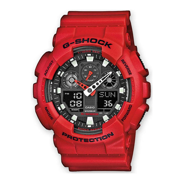 In the realm of timekeeping, where precision meets adventure, emerges a masterpiece that defies the ordinary. Crafted for the modern-day explorer, this Casio G-Shock watch is a testament to the spirit of resilience and style. Its bold, round case, bathed in a striking red hue, commands attention and speaks to the daring soul who wears it. With a commanding 51mm diameter, it is not just a watch, but a statement of audacity. Designed for the adventurous male, its refined design is built to withstand the depths, boasting a diver's water resistance of up to 200 meters. The mineral crystal shields the dial, ensuring clarity and durability, while the pull & push crown offers seamless functionality. The red resin band, secured with a tang buckle, complements the case, creating a harmonious blend of form and function. The black dial, a canvas of sophistication, houses an analogue-digital display powered by a precise quartz movement. With a caliber of 5081, it offers a comprehensive calendar featuring day, date, and month, ensuring you are always in sync with time. The chronograph, alarm, timer, and light functions are at your fingertips, ready to accompany you on any adventure. This watch is not just an accessory, it is a companion for those who dare to push boundaries and embrace the thrill of the unknown.