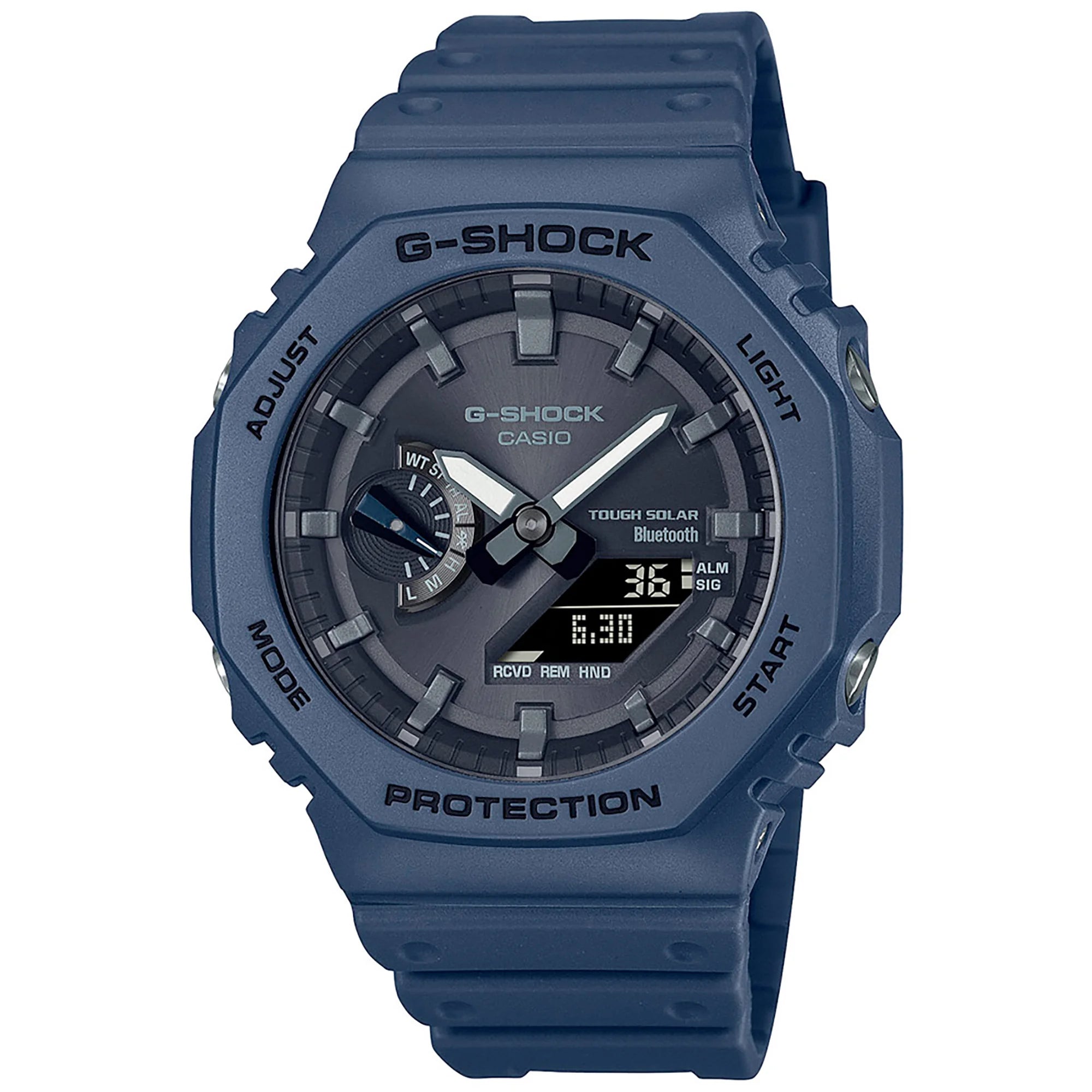 The comfortable night blue resin band, secured with a classic tang buckle, ensures a perfect and secure fit for active lifestyles. Each GA-B2100-2AER comes complete with a CASIO G-Shock 2-year International Warranty, all presented in its distinctive CASIO G-Shock Camouflage Box. Elevate your wrist game with this iconic Japanese-engineered, shock-resistant G-Shock GA-B2100 watch, blending cutting-edge technology with an enduring, sporty aesthetic.