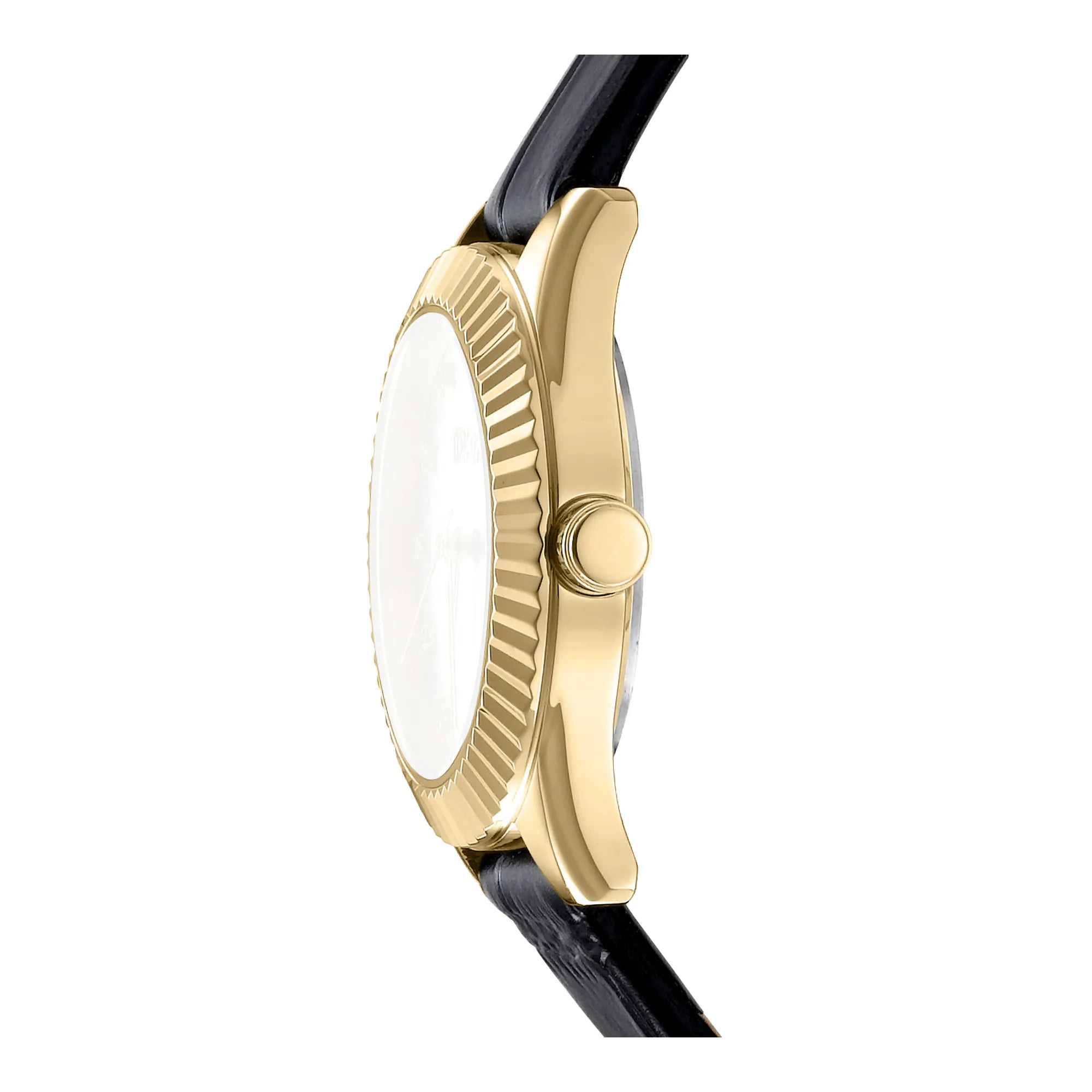 In the heart of urban elegance, where fashion meets function, emerges a timepiece that embodies the spirit of modern sophistication. Crafted in the vibrant world of DKNY, the DK1L017 Chambers Glitz watch is a testament to the brand's commitment to style and precision. Its round case, bathed in the warm glow of yellow gold, captures the essence of luxury, while the sleek 30mm diameter ensures a perfect fit for the contemporary woman. The silver-grey dial, a canvas of understated glamour, is adorned with three hands powered by precise quartz movement, offering both reliability and grace. Water-resistant up to 50 meters, this watch is as versatile as it is beautiful, ready to accompany you from the bustling city streets to serene waterside retreats. The mineral crystal adds a layer of durability, protecting the dial from the rigors of daily life. A black leather band, secured with a classic tang buckle, wraps comfortably around the wrist, adding a touch of timeless elegance to any ensemble. The pull & push crown offers ease of adjustment, ensuring that time is always on your side. This DKNY watch is more than just an accessory, it's a statement of refined design and fashion-forward thinking, perfect for the woman who knows that true style is about more than just following trends—it's about setting them.