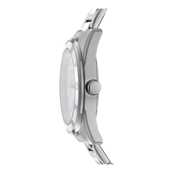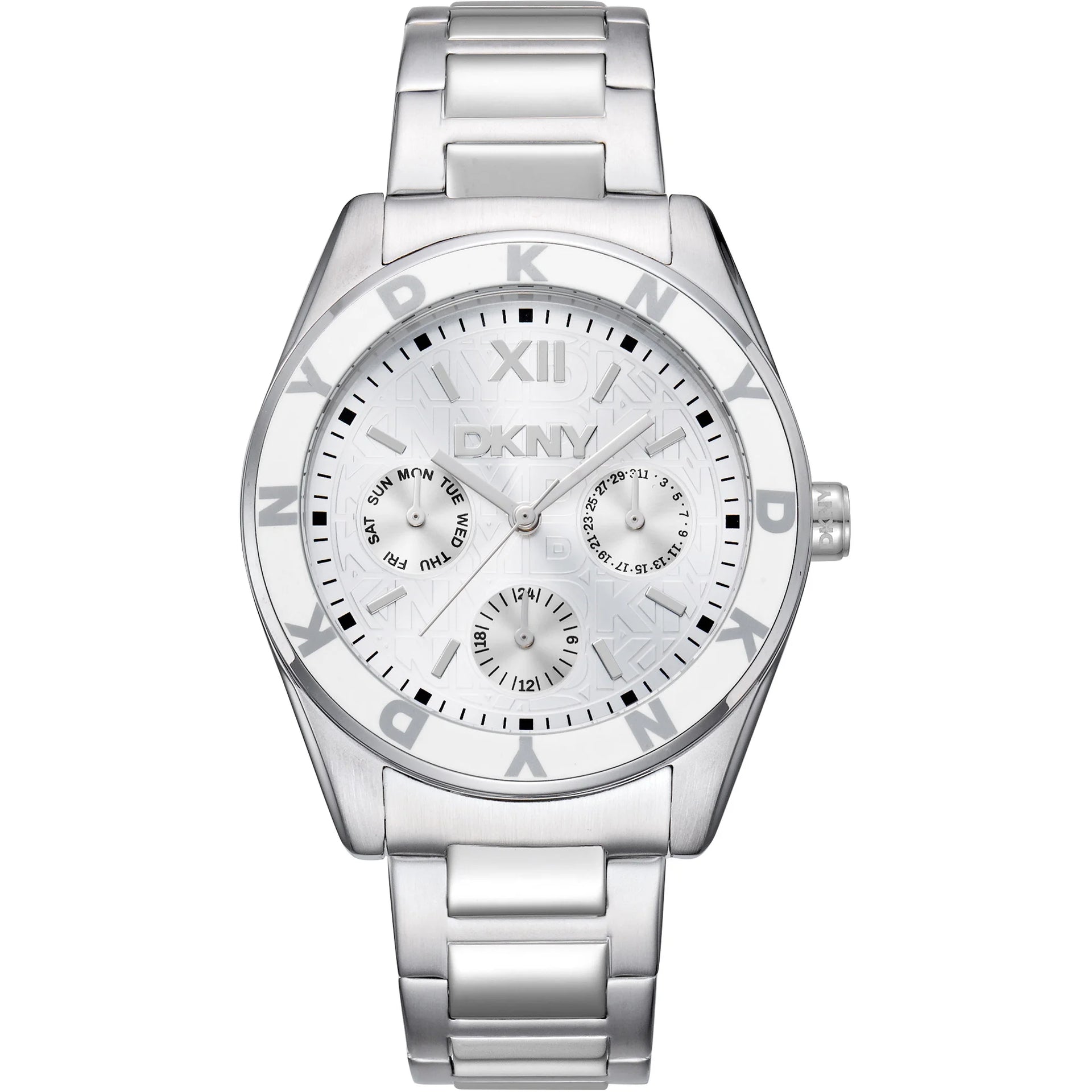 In the bustling heart of New York City, where fashion meets function, emerges a timepiece that embodies the spirit of modern elegance—the DKNY Chambers Multi Sport watch. Crafted in a refined round silhouette, this watch is a testament to contemporary style with its sleek silver-grey case and matching stainless steel band. The 36mm case diameter strikes a perfect balance between boldness and subtlety, making it an ideal accessory for the fashion-forward woman. The mineral crystal face protects a sophisticated silver-grey dial, where the art of timekeeping is elevated by a multi-function display. With a quartz movement at its core, this watch ensures precision and reliability, while the day and date calendar type adds a practical touch to its chic design. The butterfly deployant clasp with a push-button closure offers both security and ease of wear, making it a seamless addition to any ensemble. Water-resistant up to 50 meters, this watch is as versatile as it is stylish, ready to accompany you from the boardroom to a weekend getaway. The DKNY Chambers Multi Sport watch is not just an accessory, it's a statement of refined taste and modern sophistication, capturing the essence of a city that never sleeps.