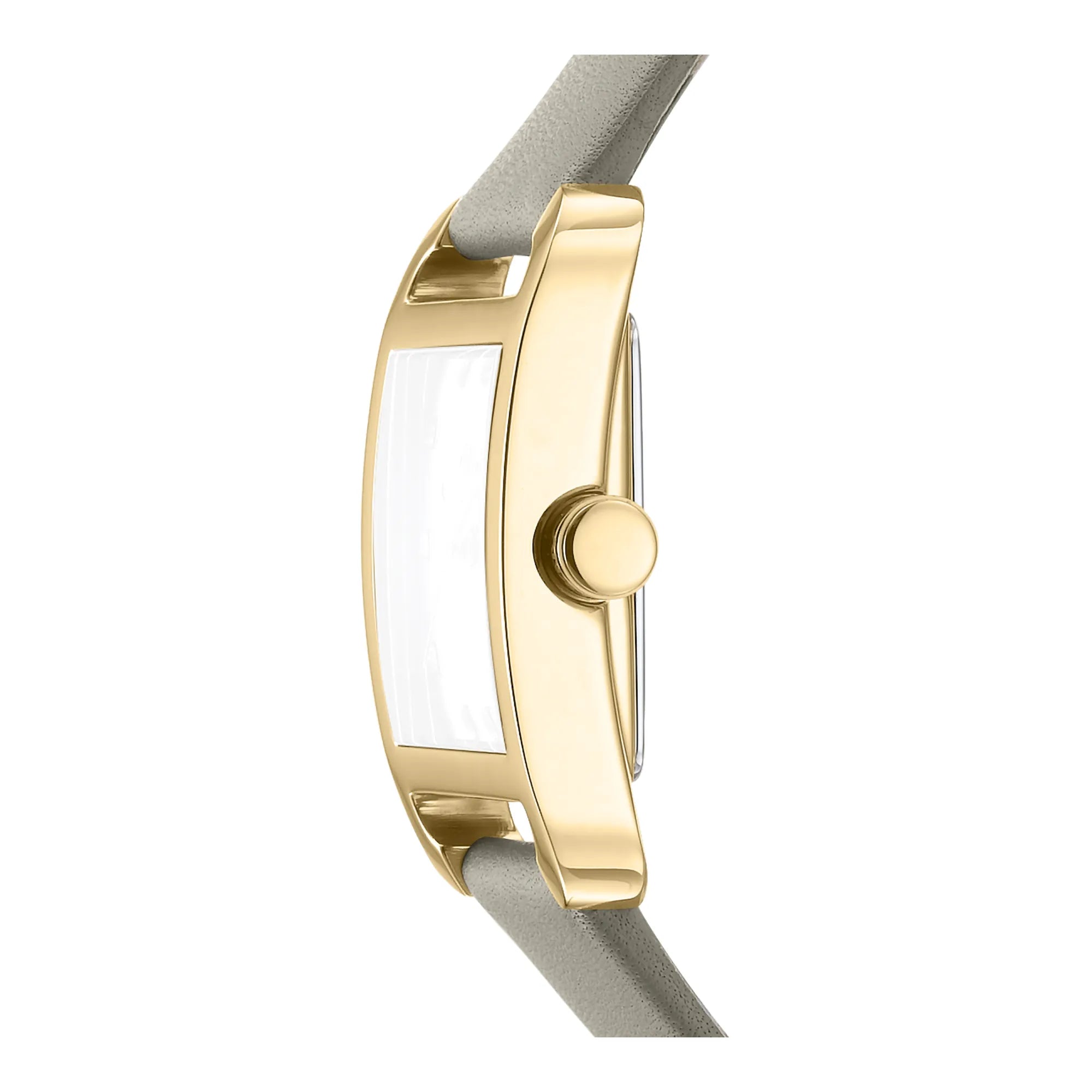 In the bustling heart of the city, where fashion meets function, emerges a timepiece that embodies the essence of urban elegance. The DKNY DK1L004 City Midi watch is a testament to modern sophistication, designed for the woman who navigates the world with grace and confidence. Its rectangular case, bathed in a luxurious yellow gold hue, captures the light with every movement, creating a dazzling display of style. Measuring a delicate 27mm in diameter, this watch is the perfect companion for those who appreciate subtlety and finesse. The silver grey leather band, with its refined texture, wraps comfortably around the wrist, secured by a classic tang buckle that speaks to timeless design. The matching silver grey dial, adorned with three hands, offers a harmonious blend of form and function, driven by precise quartz movement. Water-resistant and protected by a mineral crystal, this watch is as practical as it is beautiful, ready to accompany you through the myriad adventures of city life. With a pull and push crown, adjusting the time becomes an effortless task, allowing you to focus on what truly matters. The DKNY City Midi watch is not just an accessory, it's a statement of style, a reflection of the vibrant energy of the city, and a celebration of the modern woman's journey.