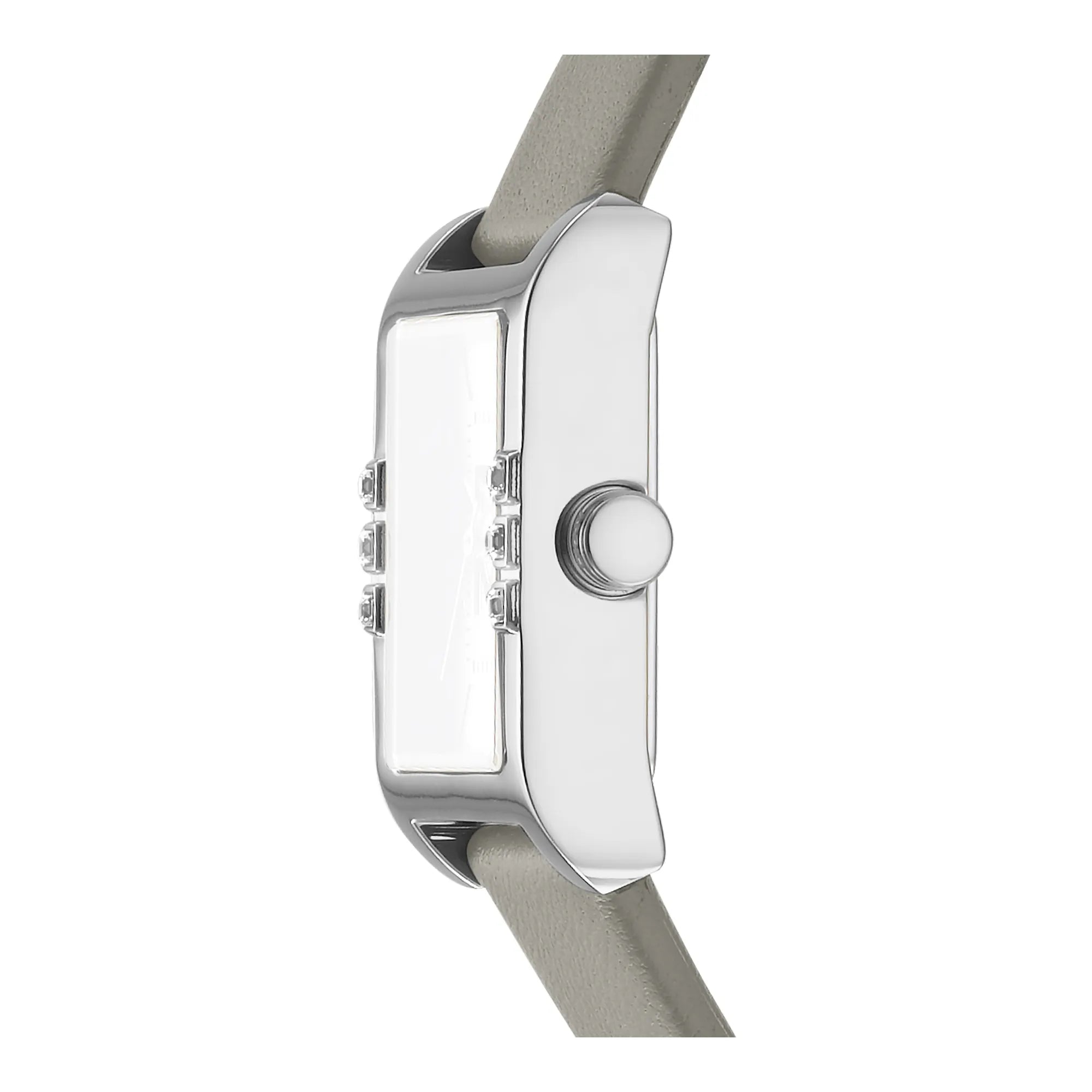 In the heart of urban elegance, where fashion meets functionality, emerges a timepiece that embodies the spirit of modern sophistication. The DKNY DK1L008 Westside Glitz watch is a testament to the art of refined design, crafted to complement the dynamic lifestyle of the contemporary woman. Its sleek rectangular case, bathed in a lustrous silver grey, captures the essence of metropolitan chic, while the matching silver grey leather band wraps the wrist with a touch of understated luxury. The tang buckle closure ensures a secure fit, allowing the wearer to move through her day with confidence and grace. Beneath the mineral crystal, the dial mirrors the case's silver grey hue, creating a harmonious monochrome palette that exudes a sense of calm and poise. The three-hand quartz movement offers precision and reliability, making it an indispensable companion for those who value both style and punctuality. Water-resistant, this watch is designed to withstand the unexpected, ensuring it remains a steadfast accessory in any setting. The DKNY Westside Glitz is more than just a watch, it is a statement of elegance and a celebration of the modern woman's journey through the ever-evolving landscape of fashion.