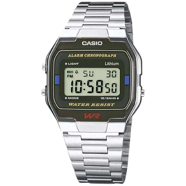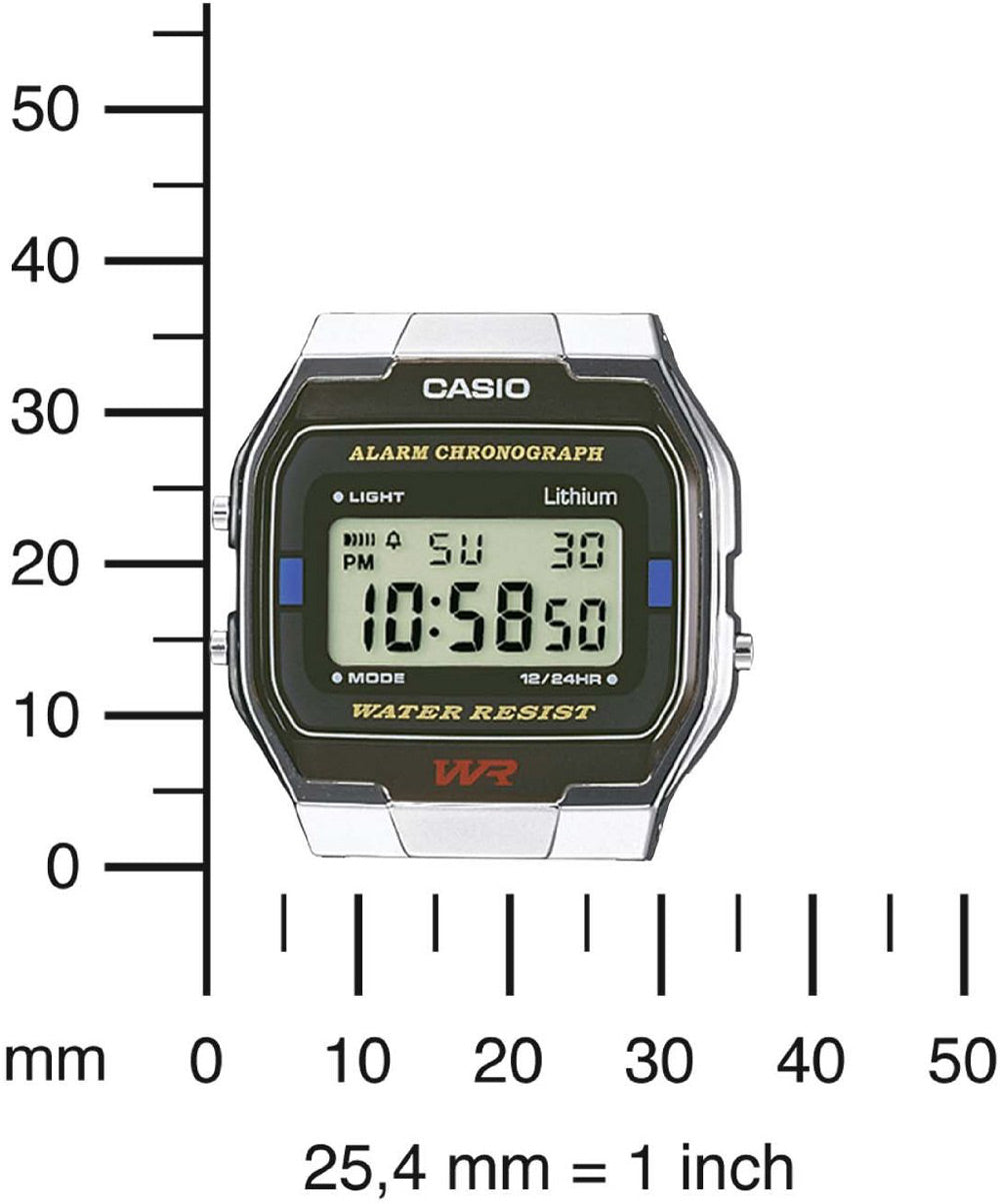 Compact maar opvallend, dit Casio digitale horloge heeft een 33mm tonvormige kast in zilvergrijs, een zwart LCD-wijzerplaat en een roestvrijstalen band. De waterbestendigheid en verstelbare sluiting weerspiegelen Casio’s toewijding aan comfort en bruikbaarheid, terwijl het gestroomlijnde ontwerp hulde brengt aan de digitale erfenis van het merk.