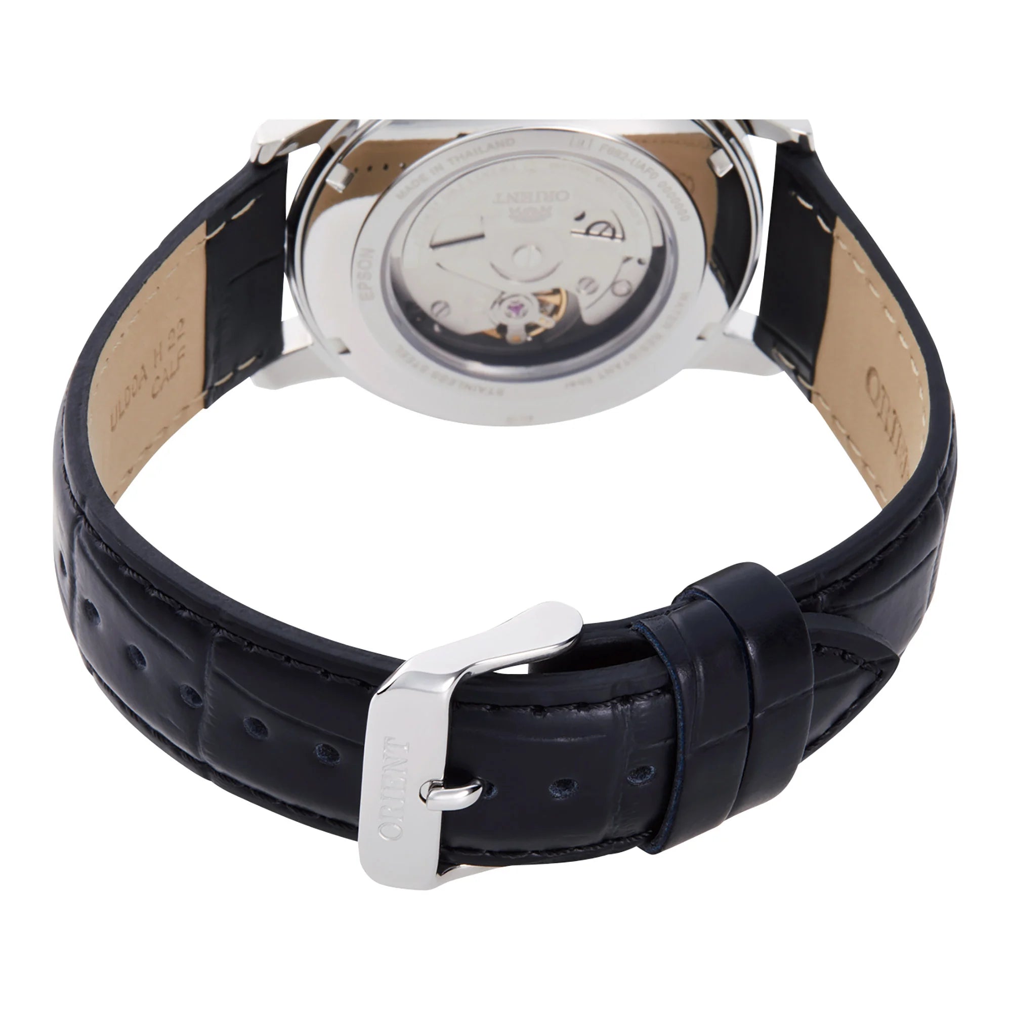 In the realm of timepieces, where elegance meets functionality, emerges a creation that embodies the essence of contemporary style. Crafted in the heart of horological innovation, the ORIENT AA0C Commuter watch is a testament to the art of watchmaking. Its round case, bathed in a sophisticated silver grey, captures the light with a subtle grace, while the 41mm diameter offers a perfect balance between presence and comfort. Designed for the modern man who appreciates the finer things in life, this watch is a harmonious blend of casual style and refined design. The mineral crystal protects a striking black dial, where the dance of three hands is orchestrated by the precise F6922 caliber, boasting 22 jewels. With a daily accuracy of +25/-15, this mechanical marvel is both hand-wound and automatic, ensuring reliability and convenience. The transparent back reveals the intricate workings of its mechanical heart, a feature that will captivate any watch enthusiast. Water-resistant up to 50 meters, it is as practical as it is stylish. The stainless steel band, in matching silver grey, secures with a tang buckle, offering both durability and elegance. The day and date calendar adds a touch of practicality, making it an ideal companion for the everyday journey. This ORIENT Contemporary watch is not just a timepiece, it is a statement of sophistication and a celebration of the timeless art of watchmaking.