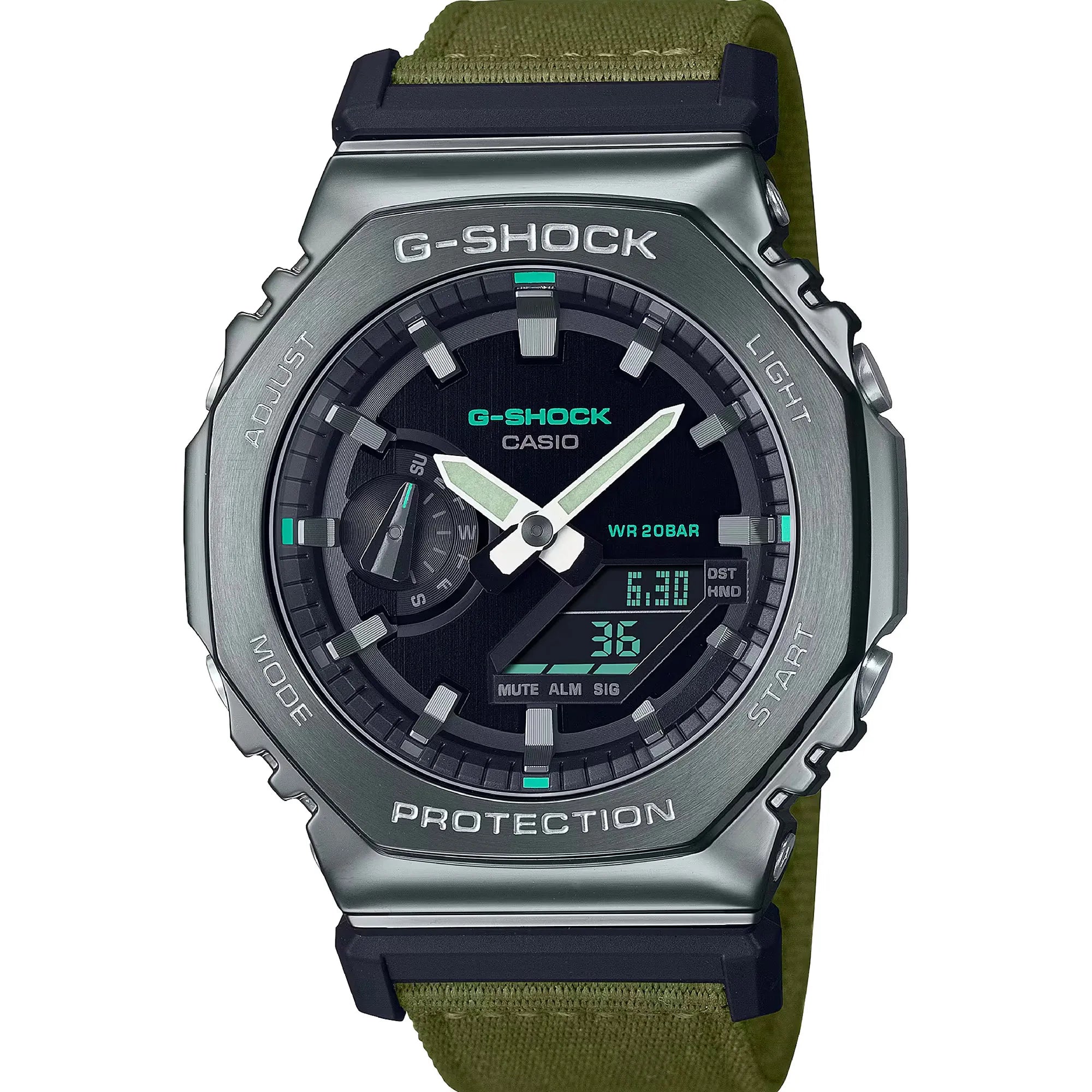 In the realm of timekeeping, where precision meets adventure, emerges a masterpiece that embodies the spirit of exploration and resilience. Crafted in the heart of innovation, this Casio G-Shock watch is a testament to the enduring allure of military style, designed for those who dare to venture beyond the ordinary. Its hexagonal case, bathed in a sleek silver grey, commands attention with a refined design that speaks to the modern adventurer. With a case diameter of 44mm, it strikes the perfect balance between boldness and wearability, making it an ideal companion for any expedition. The olive green fabric band, secured with a tang buckle, adds a touch of rugged elegance, seamlessly blending with the watch's military aesthetic. Beneath the mineral crystal lies a black dial, a canvas of digital precision powered by a quartz movement and the renowned Caliber 5611. This timepiece is not just a watch, it's a multifunctional marvel, equipped with a chronograph, alarm, timer, and world time features, ensuring you're always in sync with the world around you. The day, date, month, and year calendar keeps you organized, while the diver's 200-meter water resistance promises reliability even in the depths of adventure. With a pull and push crown and a luminous display, this watch is ready to illuminate your path, whether you're navigating city streets or exploring uncharted territories. Embrace the spirit of discovery with this Casio G-Shock, where every second is an invitation to explore the extraordinary.
