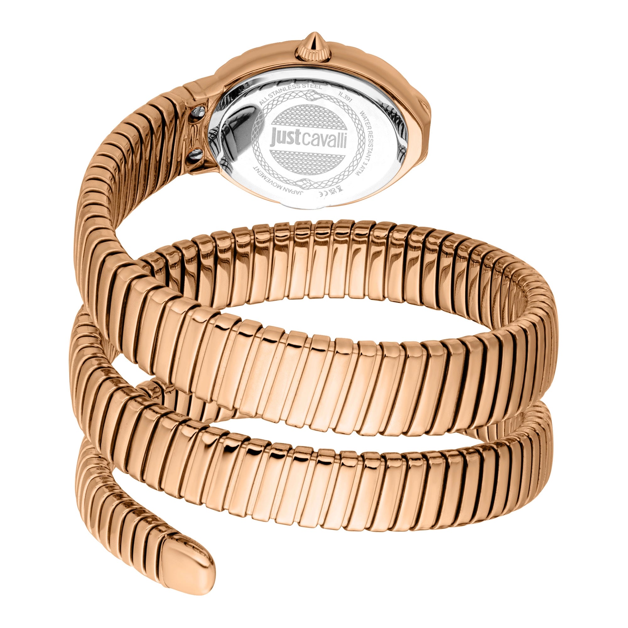 The Just Cavalli Sognia is more than a timepiece, it's a statement accessory, perfect for the modern woman who appreciates **designer watches** with a unique twist. Its subtle snake-inspired design evokes luxury and a bold fashion sense, reminiscent of high-end jewelry like those from Bulgari.