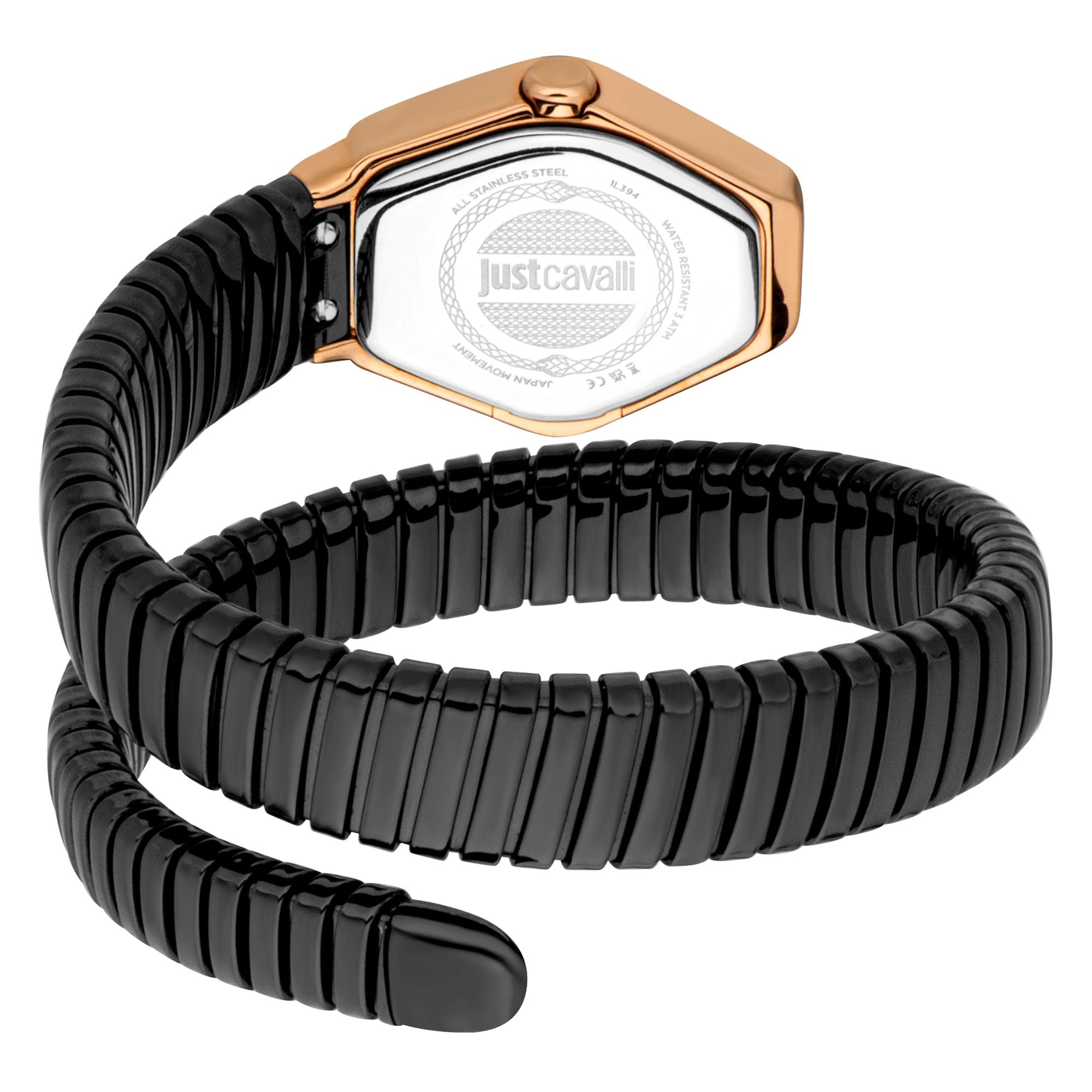 Unveil the exquisite Just Cavalli Splora JC1L394M0075, a stunning black and rose gold women's watch from the captivating Signature Snake collection. Tailored for the contemporary fashion enthusiast, this timepiece masterfully combines opulent design with distinct Italian flair.