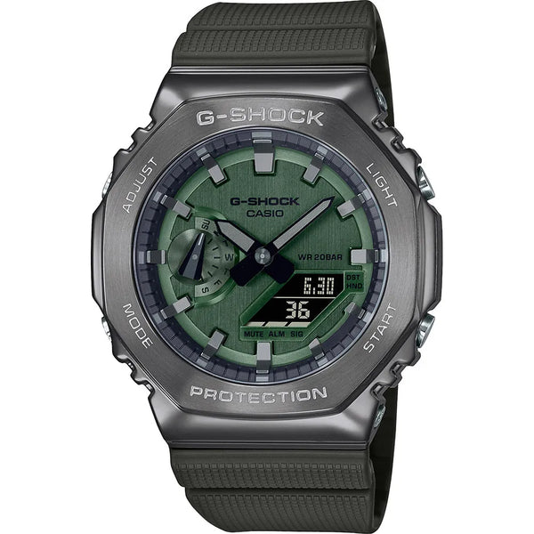 In the heart of adventure, where precision meets resilience, emerges a timepiece that embodies the spirit of exploration. Crafted in the rugged elegance of the CASIO G-Shock family, this watch is a testament to military-inspired design and functionality. Its hexagonal case, cloaked in an anthracite grey hue, commands attention with a bold 44mm diameter, offering a refined design that withstands the depths of the ocean with a diver's 200-meter water resistance. The mineral crystal shields a digital display that is as versatile as it is reliable, featuring a comprehensive calendar that tracks day, date, month, and year. The bottle green dial, a nod to nature's tranquility, is complemented by an olive green resin band, secured with a tang buckle for a secure fit. Powered by a precise quartz movement, this watch is equipped with a caliber 5611, ensuring accuracy in every second. Its array of features, including a chronograph, alarm, timer, world time, and light, make it an indispensable companion for the modern adventurer. Whether navigating urban jungles or exploring uncharted territories, this CASIO G-Shock watch is a symbol of enduring strength and timeless style, ready to accompany you on every journey.