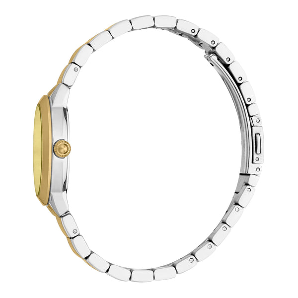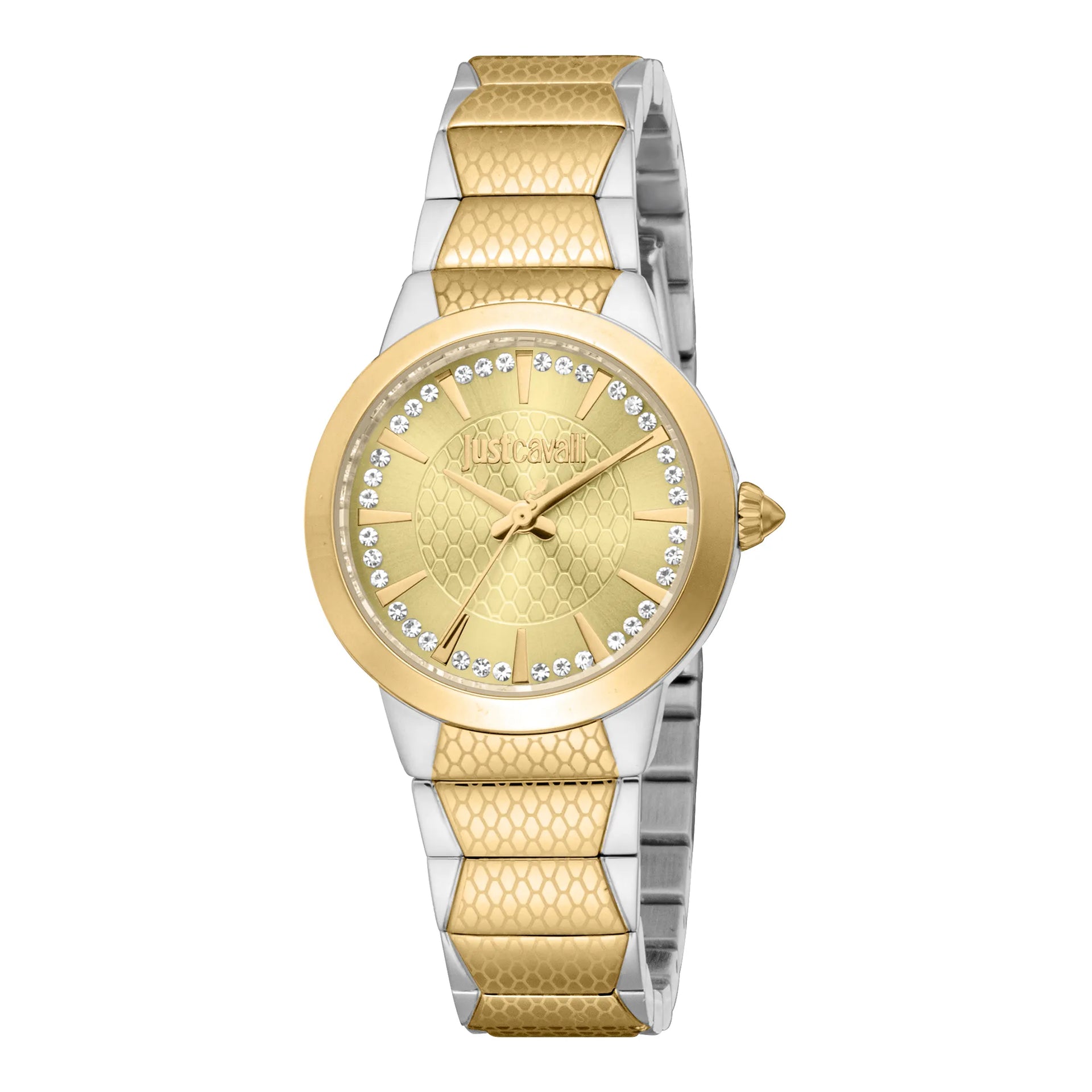 In the world of fashion, where elegance meets audacity, emerges a timepiece that captures the essence of sophistication and boldness. Crafted in the heart of Italian design, this Just Cavalli Watch from the Animalier collection is a testament to the brand's flair for the extraordinary. The round case, bathed in a sleek silver grey, frames a dial that shimmers with a champagne hue, evoking a sense of timeless luxury. Its 30mm diameter is a perfect balance of subtlety and presence, making it an ideal companion for the modern woman who embraces both style and substance. The stainless steel band, plated in a radiant yellow gold, wraps around the wrist with a butterfly deployant clasp, ensuring both comfort and security. This exquisite piece is not just a watch, it's a statement of fashion-forward thinking, with a quartz movement that promises precision and reliability. Water-resistant up to 50 meters, it is as versatile as it is beautiful, ready to accompany you from the boardroom to a night out. The mineral crystal and pull & push crown add to its refined design, making it a must-have accessory for those who dare to stand out. With its champagne dial, this watch subtly nods to a pop style, infusing a touch of playful elegance into any ensemble.