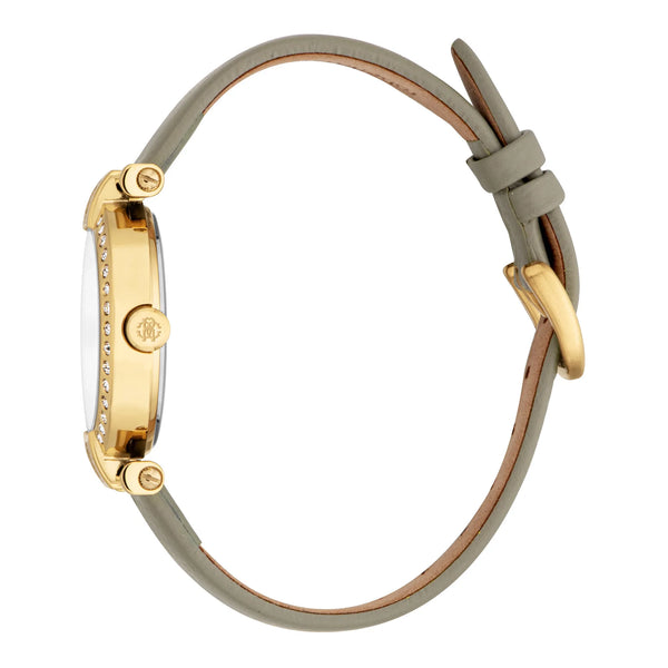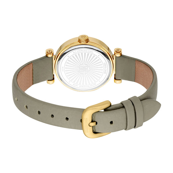 In the world of fashion, where elegance meets innovation, emerges a timepiece that embodies the essence of sophistication and style. Crafted in Switzerland, this Roberto Cavalli Lady watch is a testament to the brand's commitment to luxury and precision. Its round case, bathed in the opulent glow of yellow gold, captures the eye with a diameter of 30mm, offering a perfect balance between subtlety and statement. The mineral crystal shields a silver-grey dial, where three hands dance gracefully, powered by the reliable GL34 quartz movement. A light grey leather band, soft to the touch, wraps around the wrist with a tang buckle closure, ensuring both comfort and security. The pull & push crown adds a touch of practicality, allowing for easy adjustments. With a water resistance of up to 50 meters, this watch is not just a fashion accessory but a companion for life's adventures. The refined design speaks to the modern woman who values both beauty and functionality, making it an indispensable addition to any wardrobe.