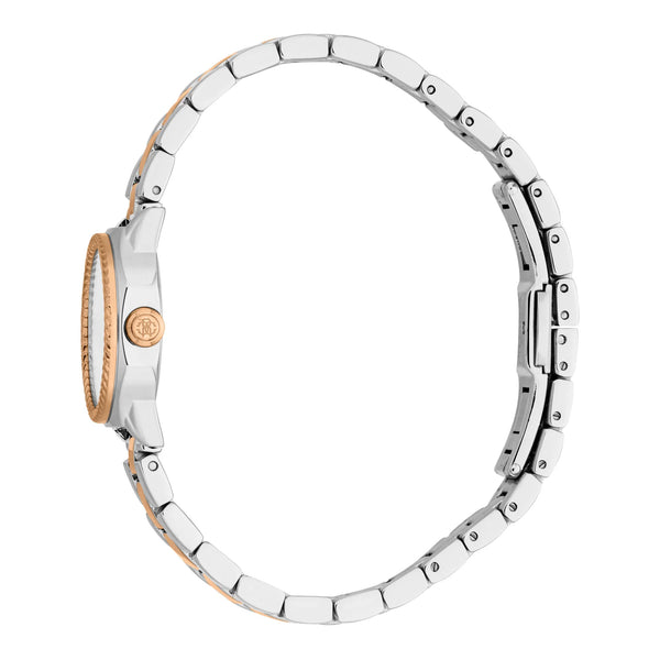 In the world of fashion, where elegance meets innovation, emerges a timepiece that embodies the essence of sophistication and style. Crafted in the heart of Swiss watchmaking, this Roberto Cavalli Lady watch is a testament to refined design and exquisite craftsmanship. Its octagonal case, bathed in a lustrous silver grey, captures the light with every movement, creating a dance of reflections that is both captivating and timeless. The 24mm case diameter is perfectly proportioned for the modern woman who appreciates subtlety and grace. Water-resistant up to 50 meters, this watch is as versatile as it is beautiful, ready to accompany you from the boardroom to the ballroom. The mineral crystal face protects a dial that mirrors the case's silver grey hue, offering a seamless blend of form and function. The stainless steel band, also in silver grey, wraps elegantly around the wrist, secured by a butterfly deployant clasp with a push-button for ease and comfort. Inside, the precision of a quartz movement, powered by the GL32 caliber, ensures that time is always on your side. With its three-hand display, this watch is a celebration of simplicity and elegance, a perfect accessory for the fashion-forward woman who values both style and substance.