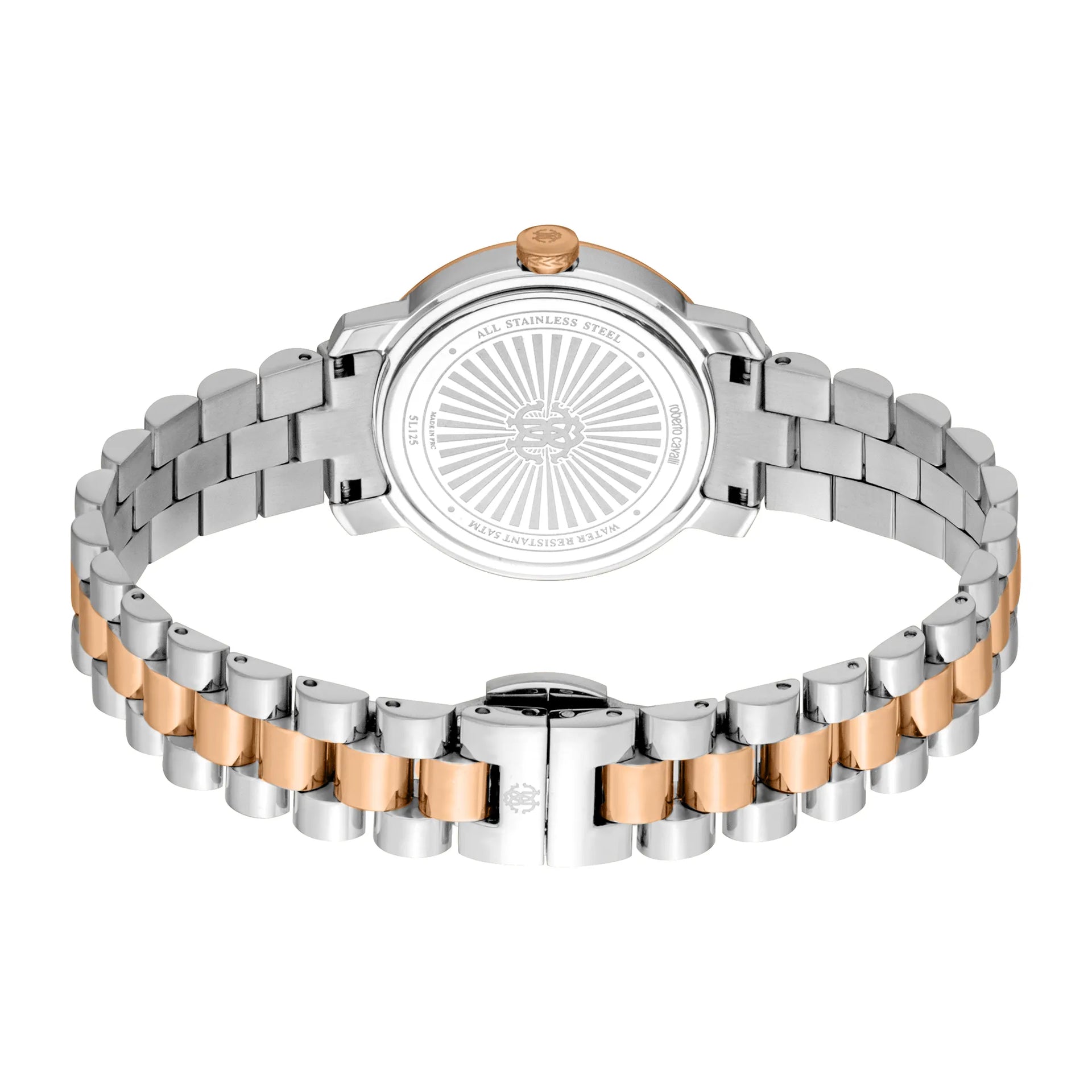 In the world of fashion, where elegance meets innovation, emerges a timepiece that embodies the essence of sophistication and style. Crafted in the heart of Swiss watchmaking, this Roberto Cavalli Lady watch is a testament to refined design and timeless allure. Its round case, bathed in a lustrous silver grey, captures the light with every movement, creating a dance of reflections that is both captivating and subtle. The 30mm diameter strikes a perfect balance between delicacy and presence, making it an ideal companion for the modern woman who values both grace and functionality. Water-resistant up to 50 meters, this watch is as versatile as it is beautiful, ready to accompany you from the boardroom to the ballroom. The mineral crystal face protects an iron grey dial, where three hands glide effortlessly, powered by the precision of a Quartz movement with a GL32 caliber. The pull & push crown offers ease of adjustment, ensuring that time is always on your side. Encircling the wrist is a stainless steel band, its silver grey hue echoing the case, secured with a butterfly deployant clasp with a push-button for both security and ease of wear. This watch is not just an accessory, it is a statement of fashion-forward thinking, a piece that speaks to the heart of those who dare to blend tradition with modernity.