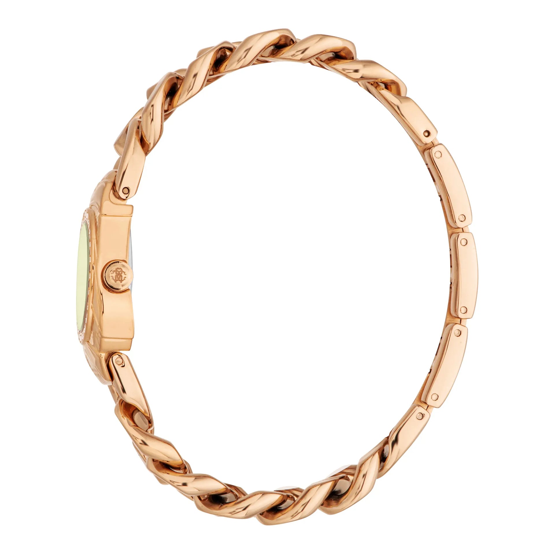In the world of fashion, where elegance meets innovation, emerges a timepiece that captures the essence of sophistication and modernity. Crafted in the heart of Swiss watchmaking, this Roberto Cavalli Lady watch is a testament to refined design and exquisite craftsmanship. Its irregular case shape, bathed in the warm glow of rose gold, exudes a sense of bold femininity, making it a perfect accessory for the contemporary woman who dares to stand out. The olive green dial, a subtle nod to nature's tranquility, is elegantly contrasted by the rose gold stainless steel band, creating a harmonious blend of colors that is both striking and serene. With a water resistance of up to 50 meters, this watch is not only a fashion statement but also a reliable companion for life's adventures. The mineral crystal protects the dial, ensuring clarity and durability, while the pull & push crown offers ease of adjustment. The jewelry clasp closure adds a touch of luxury, securing the watch with grace and style. Powered by a precise quartz movement and featuring a two-hand display with the GL22 caliber, this timepiece is a celebration of both form and function. Whether worn at a glamorous event or a casual outing, this Roberto Cavalli Lady watch is a symbol of timeless elegance and modern allure, capturing the spirit of those who embrace life's moments with poise and confidence.