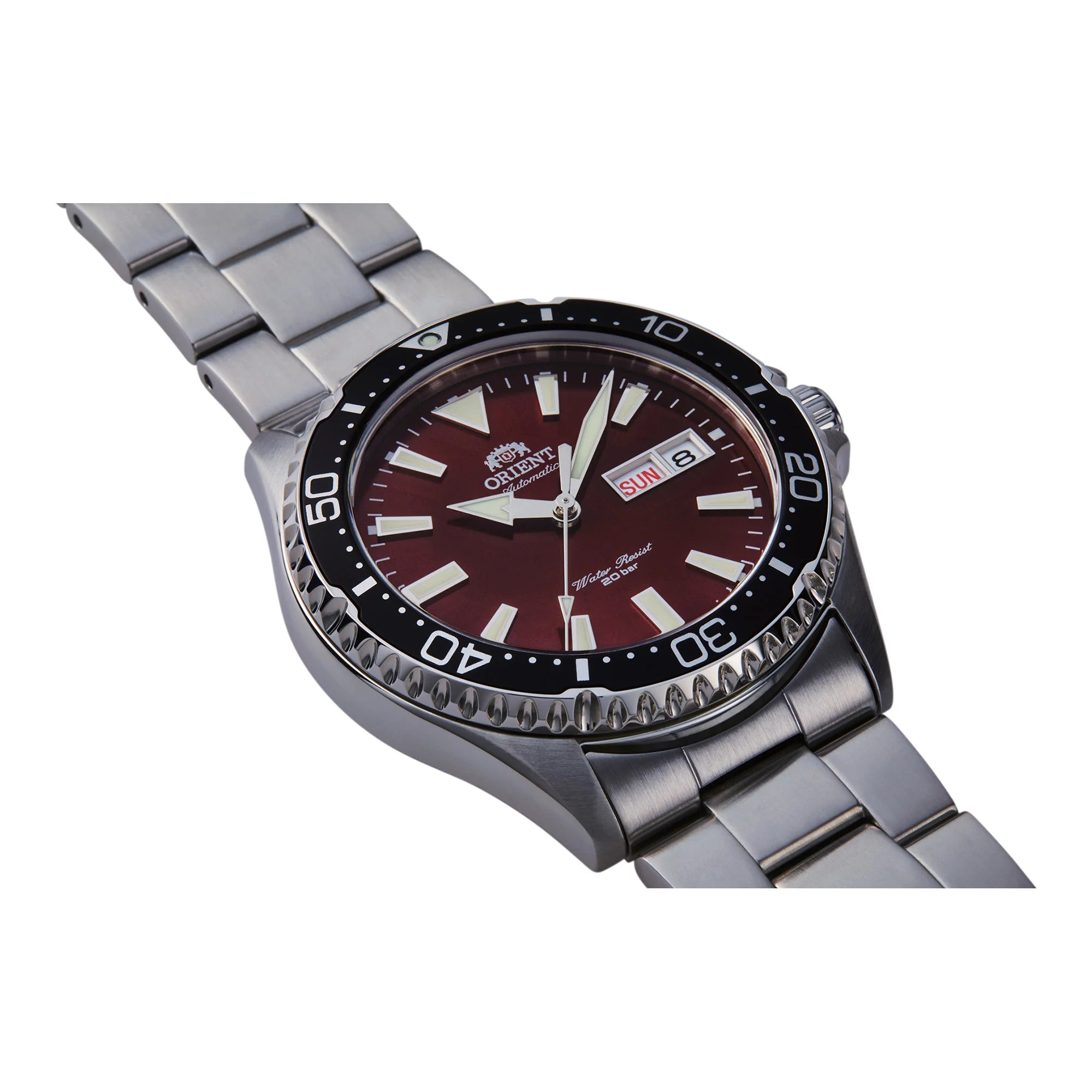 In the world of timepieces, where precision meets elegance, emerges a creation that captures the essence of adventure and sophistication. Crafted in the heart of horological excellence, the ORIENT AA00 Kamasu, also known as the Mako III, is a testament to the brand's dedication to quality and style. This ORIENT Sports watch, designed for the modern man, boasts a refined design that seamlessly blends functionality with aesthetic appeal. Its round case, bathed in a sleek silver-grey hue, houses a captivating wine-red dial that adds a pop of color, making it a standout piece for those who dare to be different. The stainless steel band, matching the case in its silver-grey elegance, wraps around the wrist with a folding deployant clasp, ensuring both security and comfort. Beneath its sapphire crystal lies the heart of the watch—a mechanical movement powered by the F6922 caliber, featuring 22 jewels and offering both hand-wound and automatic capabilities. With a daily accuracy of +25/-15, this timepiece promises reliability, while its diver's 200-meter water resistance and screw-down crown make it a trusted companion for aquatic adventures. The day and date calendar adds practicality to its sporty demeanor, making it an ideal choice for those who seek both style and substance in their everyday lives.