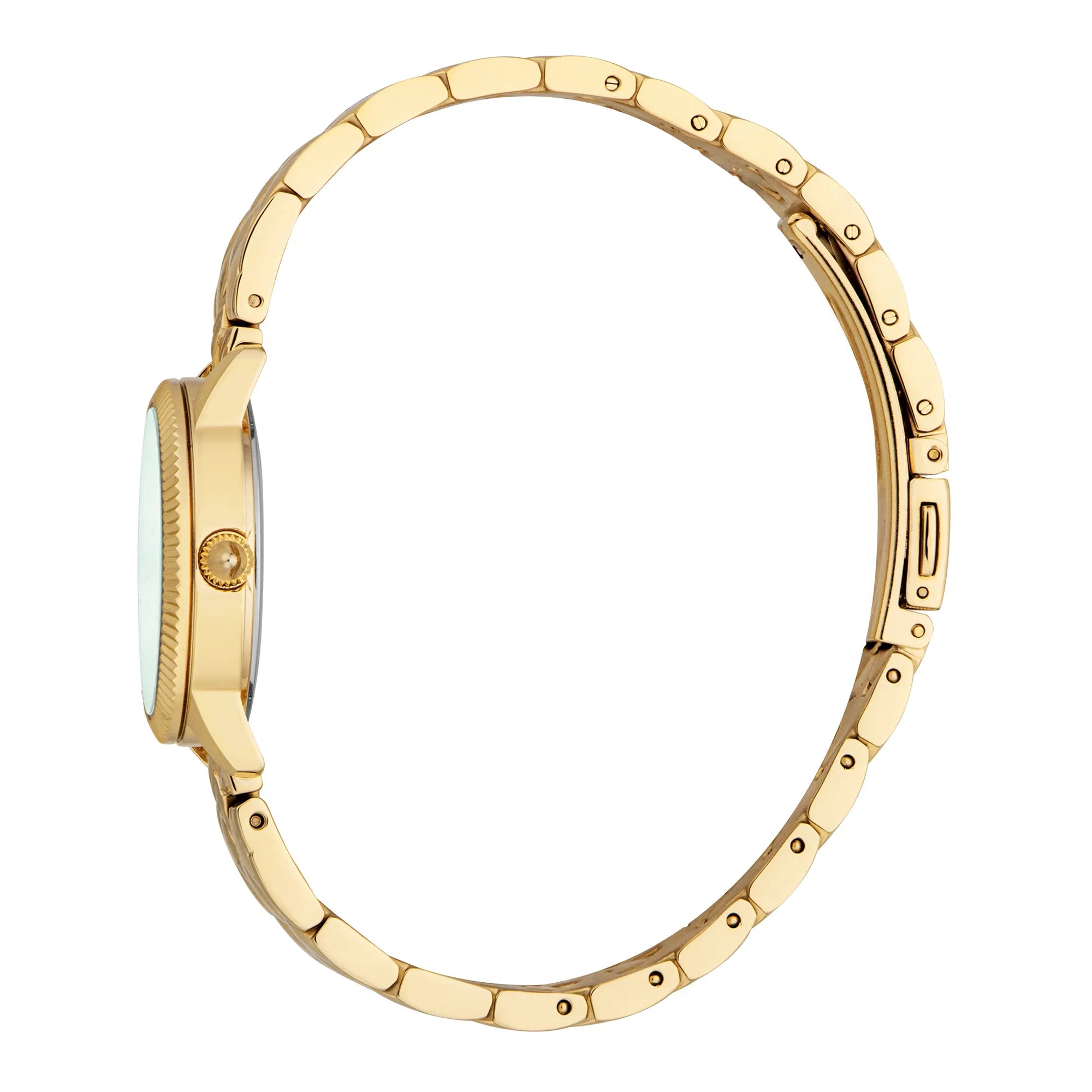 In the realm of elegance and sophistication, the Just Cavalli Watch from the Glam Chic collection emerges as a beacon of style and grace. Crafted in the heart of Swiss watchmaking tradition, this exquisite timepiece is a testament to the art of fashion. Its round case, bathed in the warm glow of yellow gold, captures the essence of luxury, while the bottle green dial adds a touch of mystery and depth, reminiscent of a serene forest at dusk. The 28mm case diameter is perfectly proportioned for the feminine wrist, offering a delicate yet bold statement. With a water resistance of up to 50 meters, this watch is not just a pretty face, it is designed to accompany you through life's adventures, whether you're navigating the urban jungle or enjoying a seaside escape. The mineral crystal protects the dial, ensuring clarity and durability, while the pull & push crown offers ease of adjustment. The stainless steel band, also in yellow gold, wraps around the wrist with a sense of continuity and harmony, secured by a butterfly deployant clasp with a push-button for effortless wear. Powered by precise quartz movement, this watch promises reliability and accuracy, with its three-hand display elegantly marking the passage of time. The Just Cavalli Watch is more than an accessory, it is a statement of individuality and a celebration of the modern woman's spirit, capturing the essence of fashion with every tick of its refined design.
