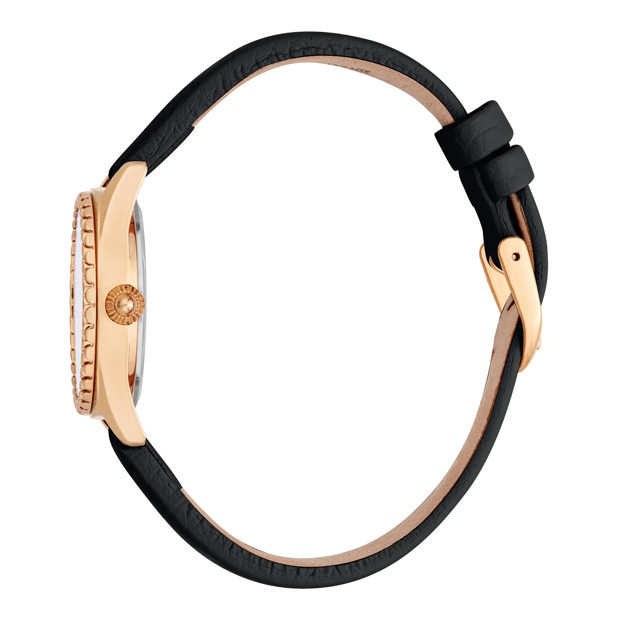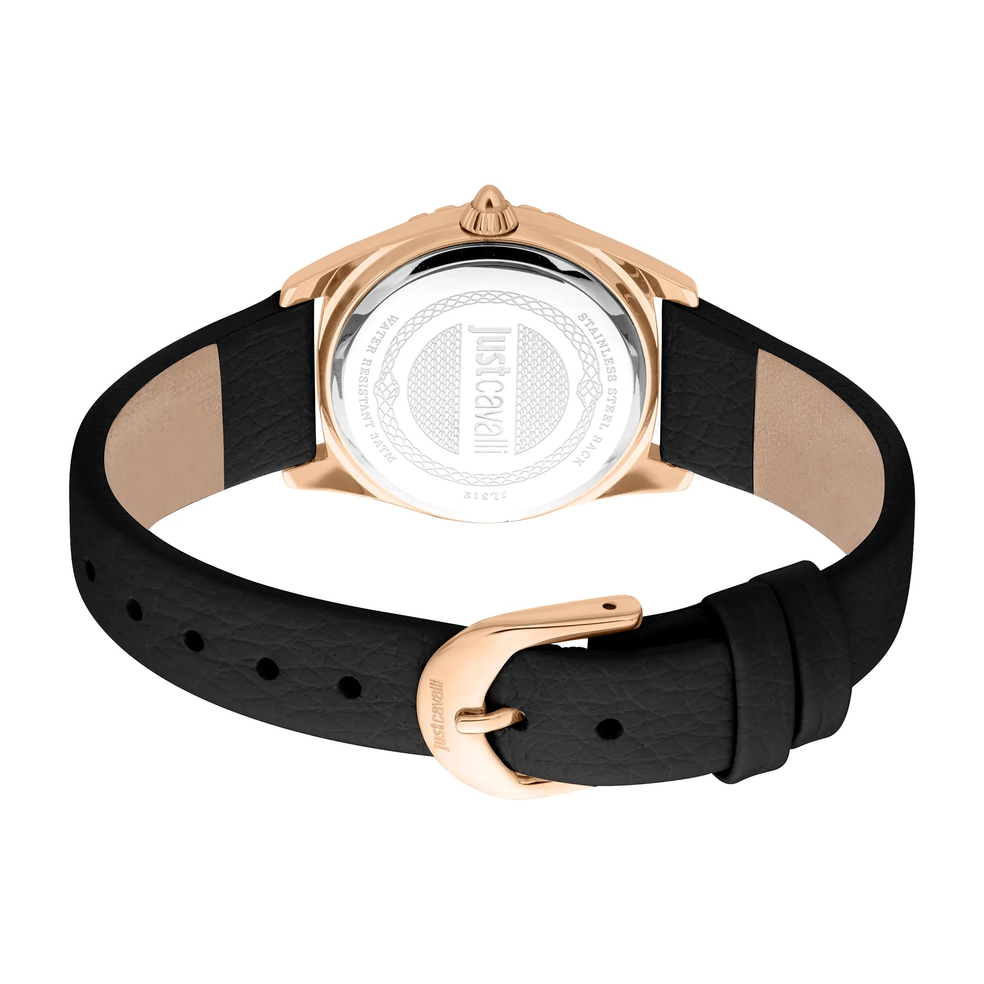 In the realm of fashion, where elegance meets audacity, emerges a timepiece that captures the essence of bold sophistication. Crafted in the heart of style, this Just Cavalli Watch, the JC1L312 Indomitable Animalier, is a testament to the fearless spirit of modern femininity. Its round case, bathed in the warm glow of rose gold, exudes a refined allure that is both timeless and contemporary. The 30mm diameter strikes a perfect balance between subtlety and statement, making it an ideal companion for any occasion. The mineral crystal protects a vibrant violet dial, a pop of color that adds a playful yet chic touch to the ensemble. This daring hue is complemented by the sleek black leather band, which wraps around the wrist with a tang buckle closure, ensuring both comfort and style. The watch's quartz movement, powered by the VJ32 caliber, promises precision, while the date calendar and three-hand display offer practicality without compromising on elegance. Water-resistant and designed for the fashion-forward woman, this watch is more than an accessory, it's a declaration of individuality and strength. With every tick, it whispers tales of adventure and confidence, inviting its wearer to embrace her unique journey with grace and flair.