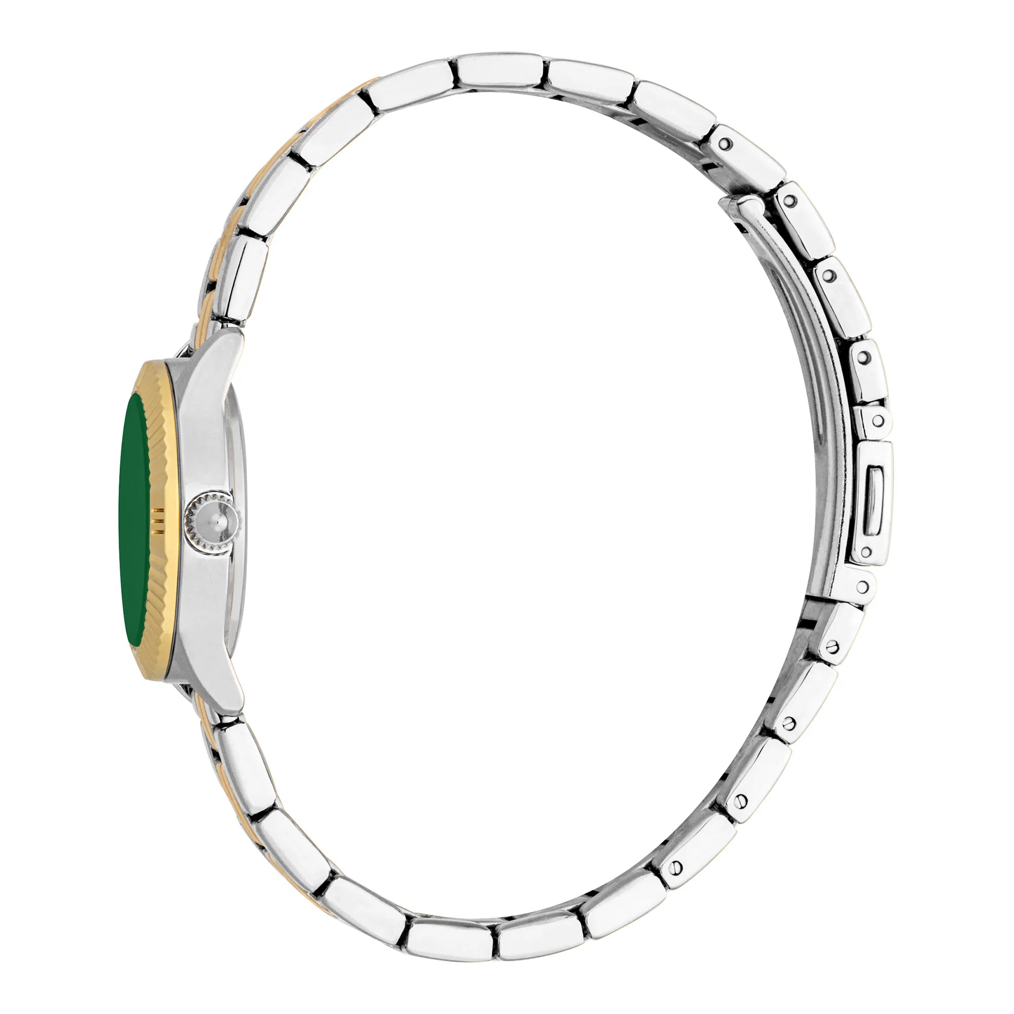 In the world of fashion, where elegance meets innovation, emerges a timepiece that captures the essence of sophistication and style. This Just Cavalli Watch, the JC1L328 Mini Raffinata, is a testament to the brand's commitment to exquisite design and unparalleled craftsmanship. Crafted in a refined round shape, the silver-grey case exudes a timeless allure, perfectly complementing the sleek stainless steel band that wraps around the wrist with a graceful embrace. The folding deployant clasp with a push-button ensures a secure and comfortable fit, making it an ideal companion for the modern woman who values both form and function. The dial, a mesmerizing bottle green, serves as the heart of this watch, where the precision of quartz movement brings the three hands to life. This vibrant hue, reminiscent of lush forests, adds a touch of nature's tranquility to the wrist, while the mineral crystal offers a clear view of time's passage. Water-resistant and designed for the fashion-forward, this watch is more than an accessory, it's a statement of elegance and grace. Whether attending a gala or navigating the everyday, this Just Cavalli Watch is a symbol of refined taste and timeless beauty, capturing the spirit of those who dare to stand out in a world of conformity.