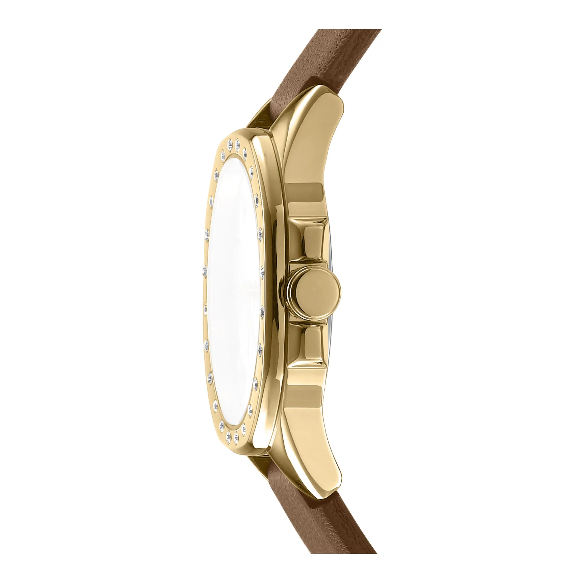 In the bustling heart of New York, where fashion meets the fast-paced rhythm of life, emerges a timepiece that embodies the spirit of the city itself. The DKNY DK1L013 Brooklyn Mini is a testament to the elegance and sophistication that defines the modern woman. With its distinctive octagonal case, bathed in the warm glow of yellow gold, this watch captures the essence of urban chic. The 30mm diameter strikes a perfect balance between subtlety and statement, making it an ideal accessory for any occasion. Crafted with a refined design, it offers water resistance up to 50 meters, ensuring it stands up to the demands of everyday life. The mineral crystal face protects a silver-grey dial, where three hands dance gracefully, powered by precise quartz movement. The pull & push crown adds a touch of practicality, while the brown leather band, secured with a tang buckle, wraps comfortably around the wrist, exuding a sense of timeless style. This DKNY watch is more than just a timekeeper, it's a reflection of the vibrant energy and elegance that defines the fashion-forward woman.