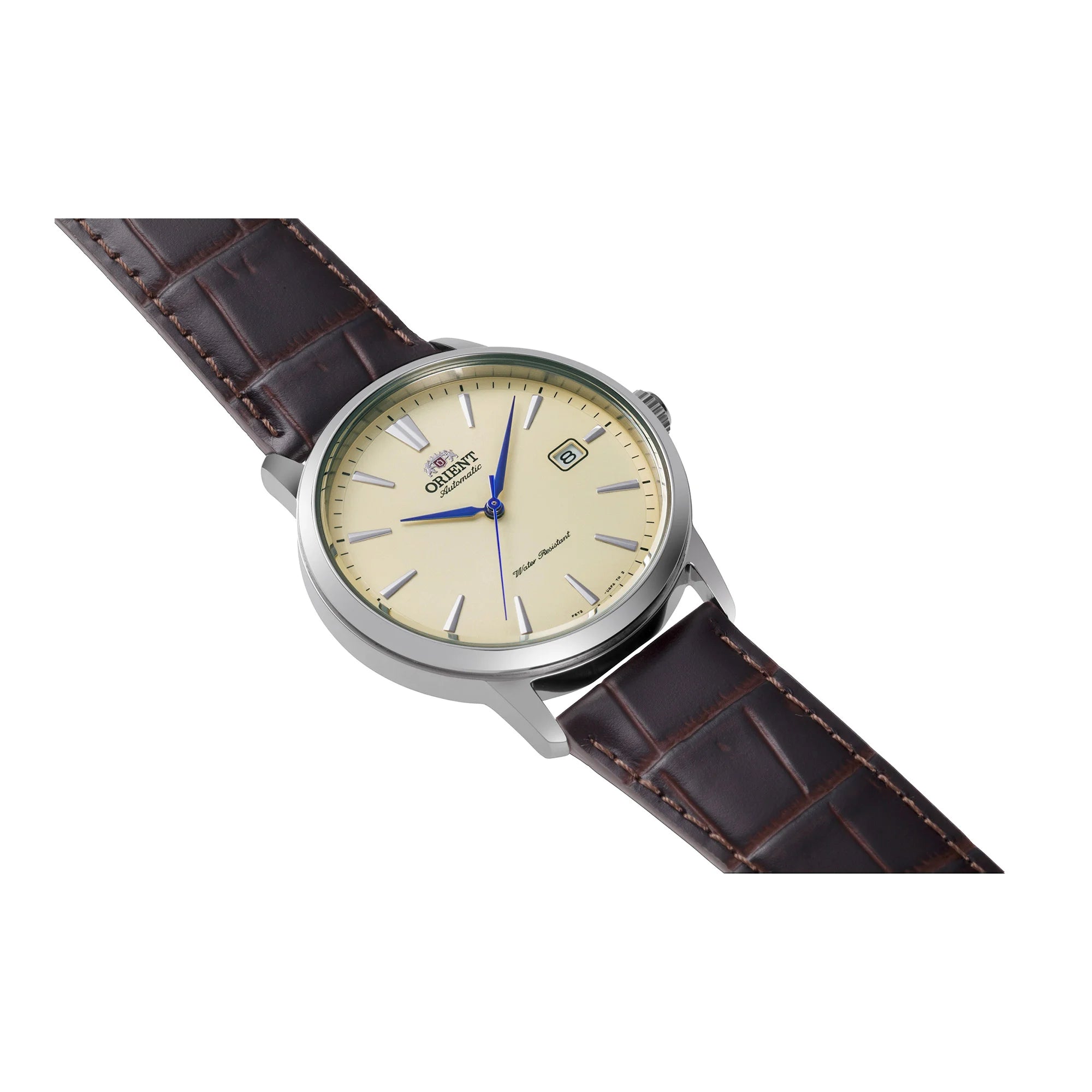 Omarm moeiteloze verfijning met de Orient Symphony III. Dit is niet zomaar een alledaags herenhorloge, het is een uiting van stille zelfverzekerdheid. De warme beige wijzerplaat en de rijke chocoladebruine leren band stralen een tijdloze charme uit, terwijl het betoverende automatische uurwerk, zichtbaar door de transparante achterzijde van de kast, een ziel van pure Japanse precisie onthult. Draag het en voel het ritme van je eigen verhaal zich ontvouwen, van zonovergoten ochtenden tot avondlijke overdenkingen.