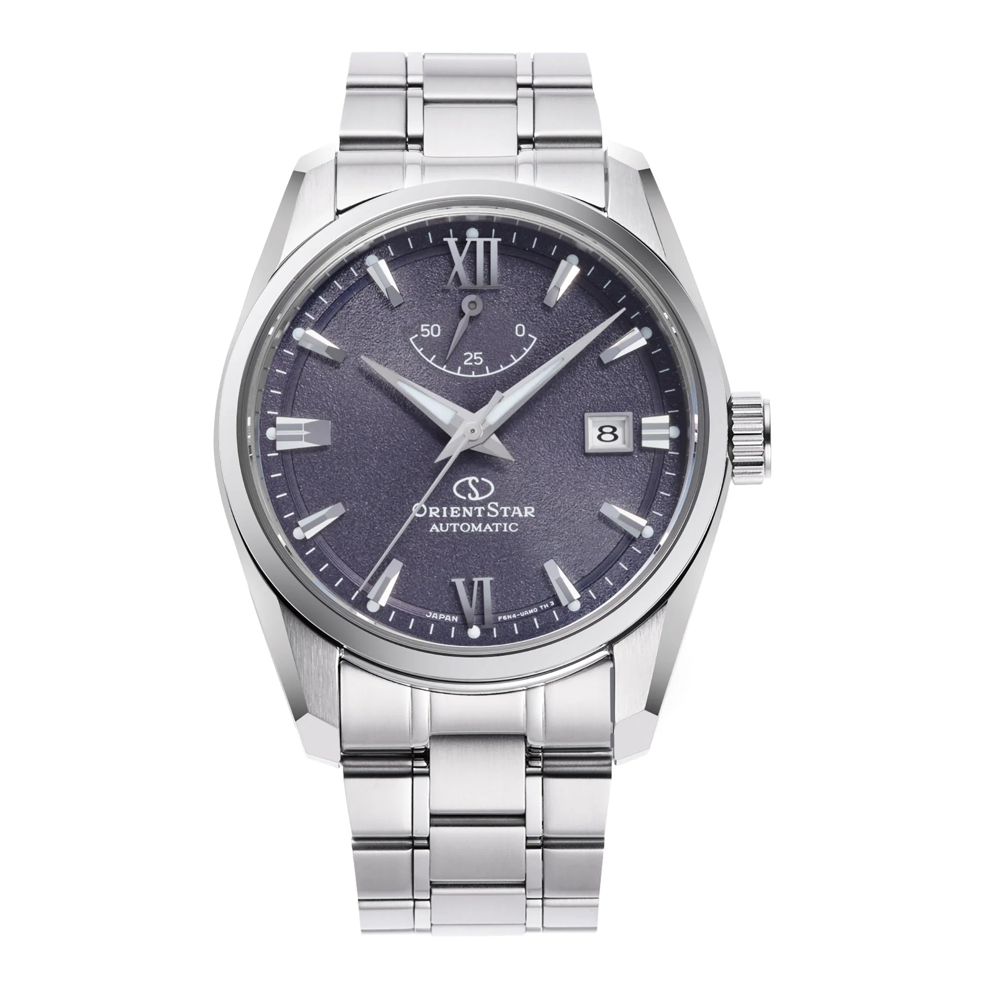 At its heart beats the in-house ORIENT F6N43 automatic mechanical movement, meticulously crafted by SEIKO EPSON CORPORATION. Boasting 22 jewels, this caliber offers exceptional reliability with a daily accuracy of +25/-15 seconds. Experience the convenience of a power reserve indicator, along with hand-winding and hacking functions for precise time setting. A practical date display completes the sophisticated dial.