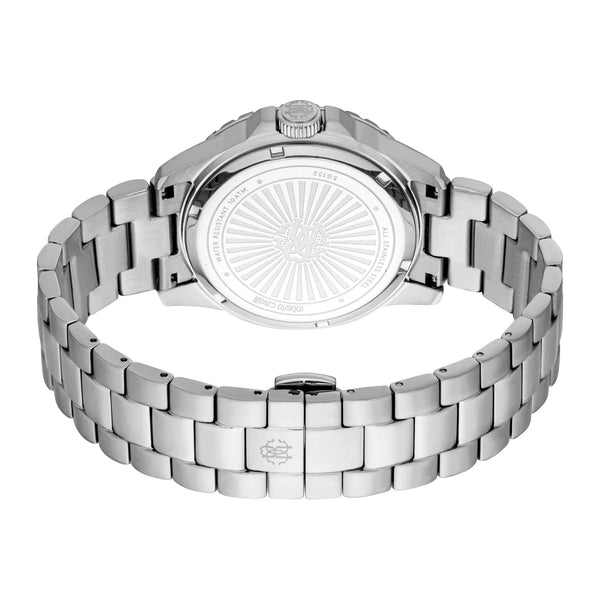 In the world of horology, where elegance meets precision, emerges a timepiece that embodies the essence of modern sophistication. Crafted in the heart of Swiss watchmaking, this Roberto Cavalli Gent watch is a testament to refined design and timeless style. Its round case, bathed in a sleek silver grey hue, measures a confident 40mm in diameter, making it a perfect companion for the discerning gentleman. The mineral crystal shields a dial that mirrors the case's silver grey elegance, creating a seamless flow of color and texture. Beneath this polished exterior lies a quartz movement, a marvel of engineering that ensures precision with every tick. The watch's stainless steel band, also in silver grey, wraps around the wrist with a sense of continuity, secured by a butterfly deployant clasp with a push-button for ease and comfort. Water-resistant up to 100 meters, this watch is as versatile as it is stylish, ready to accompany you from the boardroom to the beach. The pull & push crown and the date calendar add functionality to its fashion-forward design, making it not just a timekeeper, but a statement of style. With its analogue display and caliber 2315, this watch is more than an accessory, it's a reflection of a lifestyle that values both form and function, a true embodiment of the Roberto Cavalli ethos.