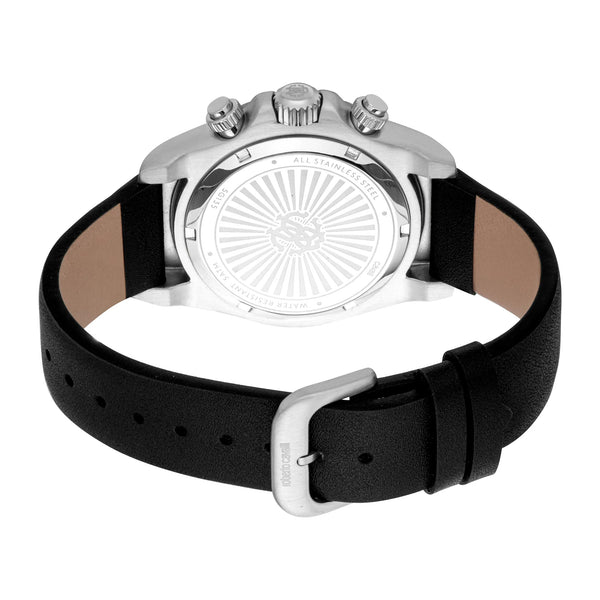 In the realm of sophisticated timepieces, where elegance meets precision, emerges a creation that embodies the essence of modern masculinity. Crafted in the heart of Swiss watchmaking tradition, this Roberto Cavalli Gent watch is a testament to refined design and timeless style. Its round case, bathed in a sleek silver grey hue, captures the light with a subtle allure, while the 40mm diameter offers a perfect balance between presence and comfort. The mineral crystal shields the dial, ensuring clarity and resilience, as the pull & push crown invites you to engage with its intricate mechanics. A black leather band, soft yet durable, wraps around the wrist with a tang buckle closure, exuding an air of understated luxury. The silver grey dial, a canvas of sophistication, hosts a chronograph display that speaks to the watch's fashion-forward spirit. With a quartz movement at its core, this timepiece promises precision, while the date calendar adds a touch of practicality. Water-resistant up to 50 meters, it stands ready to accompany you through life's adventures, whether in the boardroom or beyond. This Roberto Cavalli watch is not just an accessory, it's a statement of style and a celebration of the art of watchmaking.