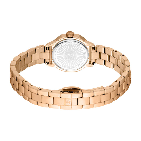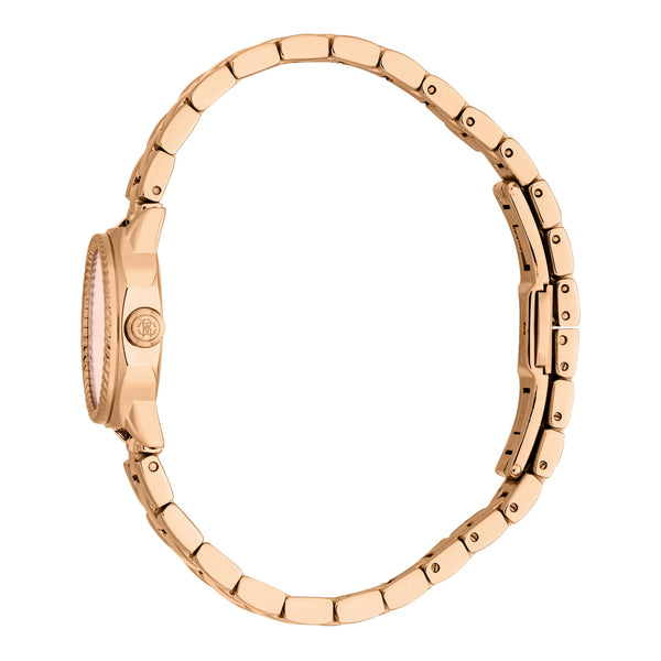 In the world of fashion, where elegance meets innovation, emerges a timepiece that captures the essence of femininity and sophistication. Crafted in the heart of Swiss watchmaking, this Roberto Cavalli Lady watch is a testament to refined design and exquisite craftsmanship. The octagonal case, bathed in a luxurious rose gold hue, exudes a sense of timeless allure, perfectly complementing the delicate wrist of the modern woman. With a case diameter of 24mm, it strikes the perfect balance between subtlety and statement. The mineral crystal offers a clear view of the enchanting pink dial, where three hands dance gracefully, powered by the precision of a Quartz movement with a GL32 caliber. The stainless steel band, also in rose gold, wraps elegantly around the wrist, secured by a butterfly deployant clasp with a push-button, ensuring both comfort and style. Water-resistant up to 50 meters, this watch is as versatile as it is beautiful, ready to accompany you from a day at the office to an evening soirée. The pull & push crown adds a touch of practicality, making time adjustments a breeze. This Roberto Cavalli Lady watch is not just an accessory, it's a statement of fashion-forward thinking, a celebration of the bold and the beautiful, and a nod to the pop style with its vibrant pink dial. Embrace the allure of this exquisite timepiece and let it be a reflection of your unique style and grace.