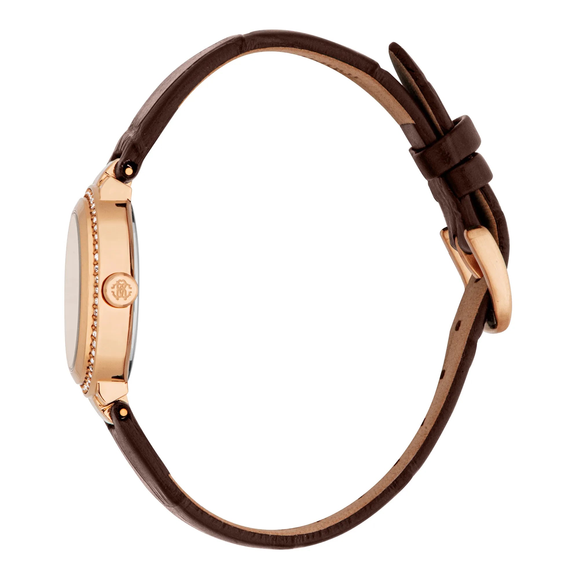 In the world of fashion, where elegance meets innovation, emerges a timepiece that captures the essence of sophistication and style. Crafted in the heart of Swiss watchmaking, this Roberto Cavalli Lady watch is a testament to refined design and exquisite craftsmanship. The round case, bathed in a luxurious rose gold hue, exudes a warm glow that complements the delicate wrist of its wearer. With a case diameter of 28mm, it strikes the perfect balance between subtlety and presence, making it an ideal accessory for any occasion. The iron grey dial, a canvas of understated elegance, is adorned with three hands powered by a precise quartz movement, ensuring that time is always on your side. The GL34 caliber adds a touch of precision to this masterpiece. Encased in mineral crystal, the dial is protected from the rigors of daily life, while the pull & push crown offers ease of adjustment. The brown leather band, secured with a tang buckle, wraps comfortably around the wrist, adding a touch of classic charm to the modern design. With a water resistance of up to 50 meters, this watch is as versatile as it is beautiful, ready to accompany you from the boardroom to a weekend getaway. A true fashion statement, this Roberto Cavalli Lady watch is more than just a timepiece, it's an expression of grace and style, a reflection of the modern woman's spirit.