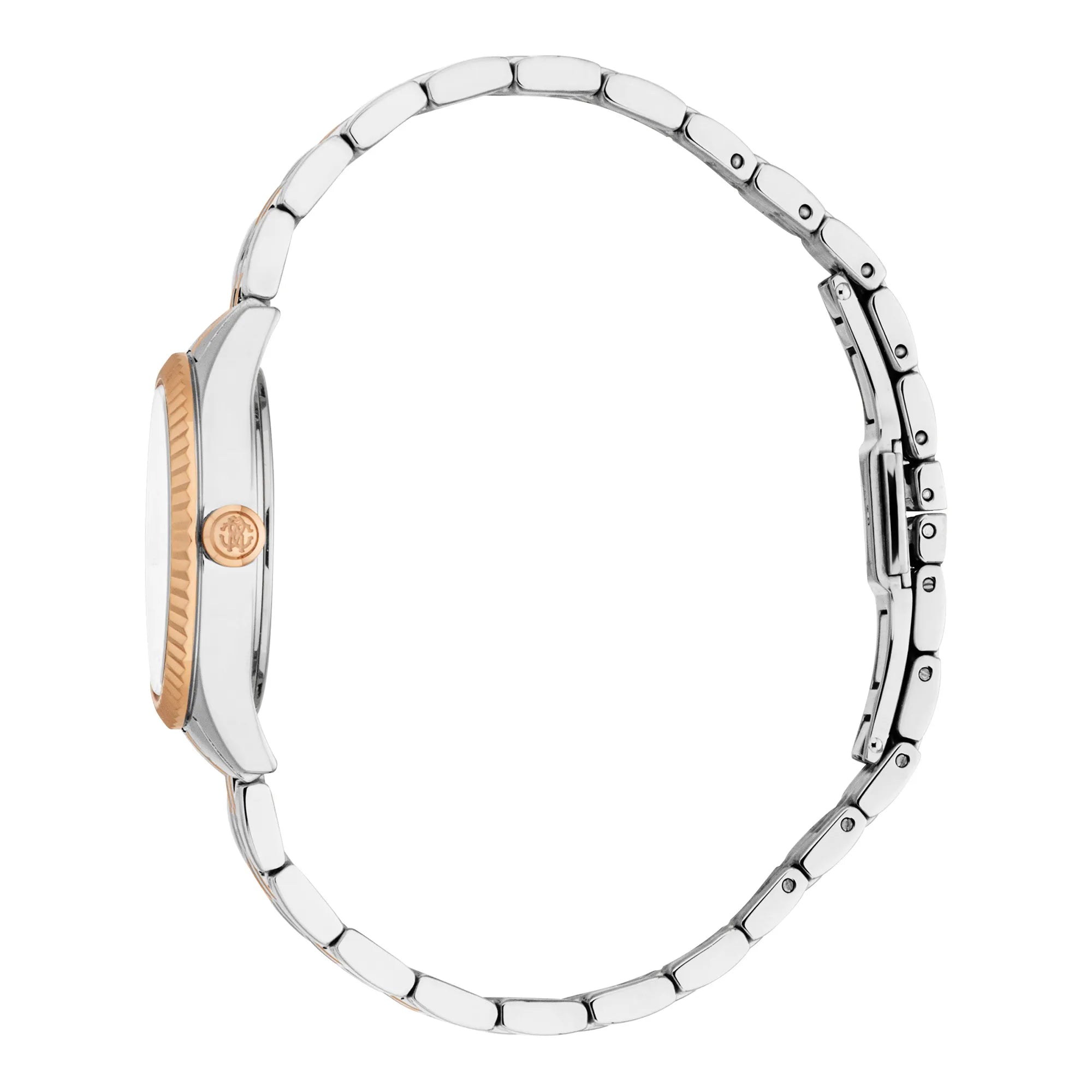 In the world of fashion, where elegance meets precision, emerges a timepiece that embodies the essence of sophistication and style. Crafted in the heart of Swiss watchmaking, this Roberto Cavalli Lady watch is a testament to refined design and timeless allure. Its round case, bathed in a lustrous silver grey, captures the light with every movement, while the 28mm diameter ensures a delicate yet striking presence on the wrist. The mineral crystal shields the oyster white dial, where three hands dance gracefully, powered by the reliable GL32 quartz movement. A pull & push crown offers seamless adjustment, enhancing the watch's user-friendly charm. The stainless steel band, also in silver grey, wraps around the wrist with a sense of continuity and grace, secured by a butterfly deployant clasp with a push-button for effortless elegance. With a water resistance of up to 50 meters, this watch is not just a fashion statement but a versatile companion for the modern woman. Its design speaks to those who appreciate the finer things in life, where every detail is meticulously crafted to perfection. This Roberto Cavalli Lady watch is more than an accessory, it's a celebration of femininity and fashion, a piece that whispers luxury with every tick, inviting you to embrace the art of timekeeping with unparalleled grace.